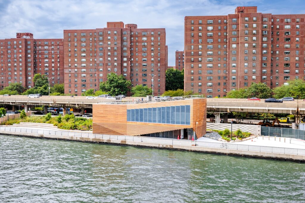 Breaking ground in Fall 2023, the design and construction of the Center was managed by NYCEDC on behalf of Solar One. Gilbane Building Company served as the construction manager, and the building’s architect is BIG-Bjarke Ingels Group.