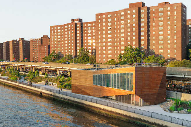The building features a solar photovoltaic array alongside the FDR Drive, visible to tens of thousands of New Yorkers every day. It generates off the grid solar electricity allowing the building to serve as a community disaster relief center in the event of future storms. Energy storage will enable the building to be fully resilient.